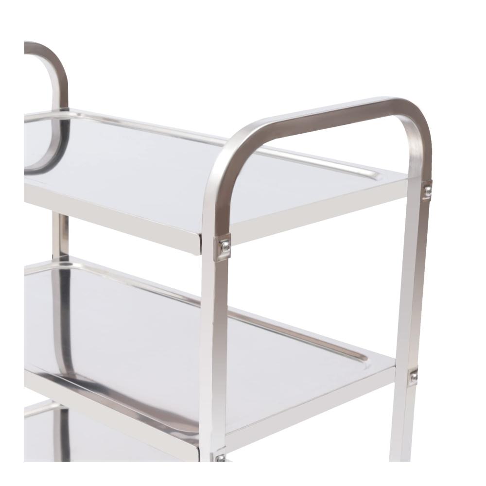 Entdecken Sie den Luxus des 3-Etagen Servierwagens Edelstahl-Rollwagen mit Feststellbremsen – Der perfekte Küchenwagen Teewagen Abräumwagen und Lebensmittelwagen für Catering und Gastronomie. Praktisch und stilvoll in kleiner Größe (75*40*835 cm). Erleben Sie erstklassigen Service