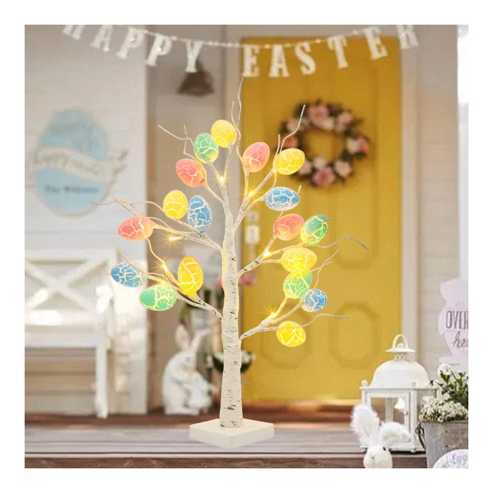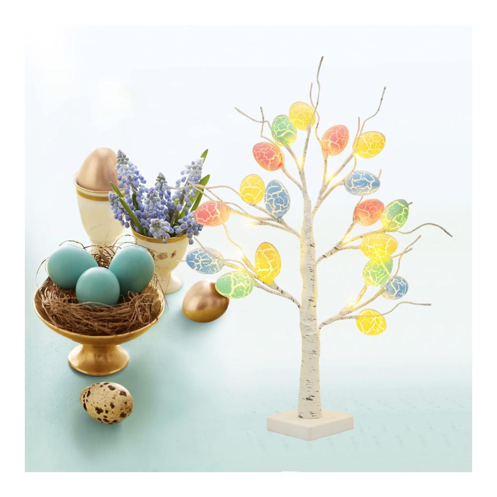 Eine unverzichtbare Dekoration für OsternLeuchtende Ostereier, ein wirklich schöner Dekobaum, ob zu Ostern oder einfach so, er ist wirklich ein Hingucker! | Mehr Ostereier18 bunten geknackten Ostereiern stehen für den Frühling – den Beginn des neuen Lebens. Geben Sie Ihnen eine bessere Bedeutung | Warmweißes LichtDer Lichterbaum strahlt ein schönes warmweißes Licht aus. Bringt angenehmes Licht Abends. |