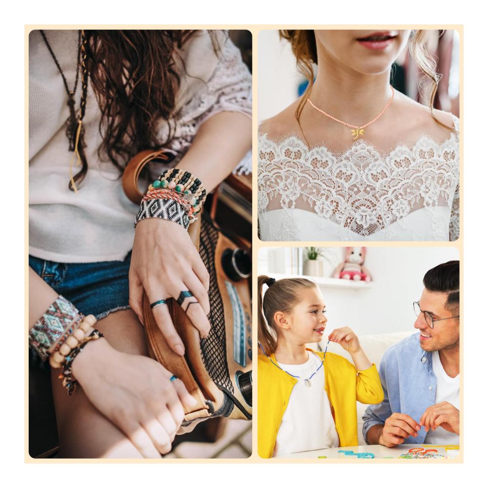 • DIY Schmuckherstellungsset als Geschenk: Das Schmuckherstellungsset kann verwendet werden, um Freundschaftsarmbänder, Anhänger, Ohrringe, Halsketten, Fußkettchen und mehr für gute Freunde herzustellen. Es kann sogar dazu dienen, Rucksäcke, Handys und andere Dinge zu dekorieren. Das kreative DIY ermöglicht es, die gewünschten Geschenke selbst herzustellen, und ist eine ideale Wahl für Kinder während der Ferien, zum Geburtstag, bei Treffen oder als Belohnung.