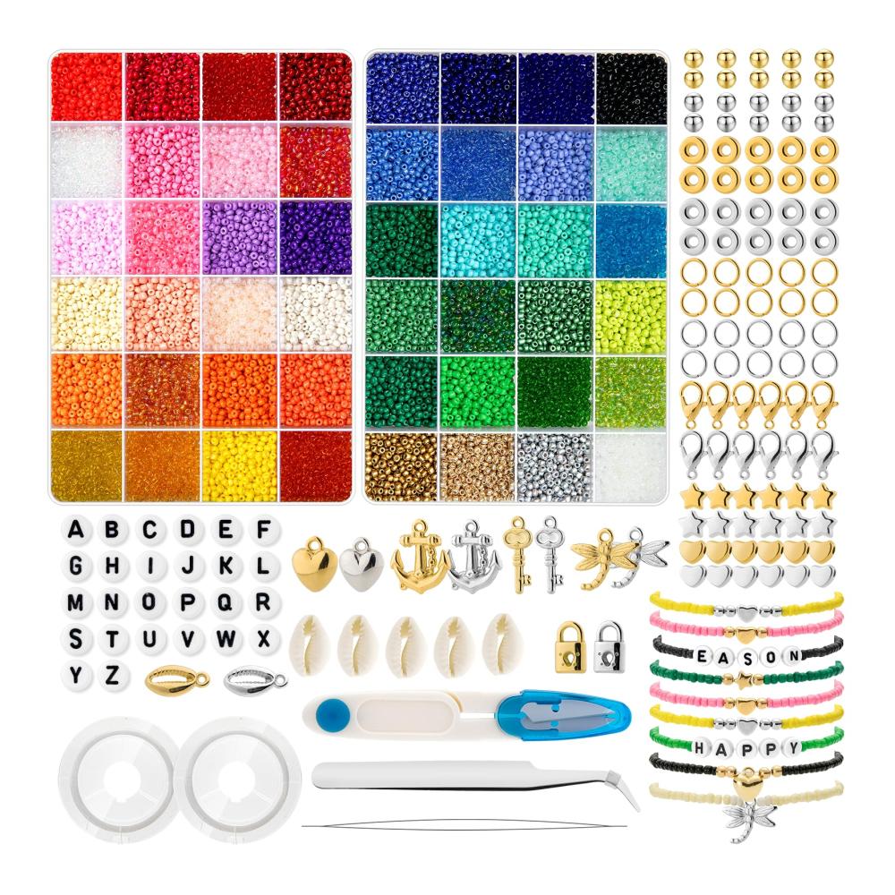 Exquisites DIY Schmuckperlen-Set 16000 Glasperlen & 300 Buchstabenperlen. Kreiere atemberaubende Halsketten Armbänder und Ohrringe. Perfektes Geschenk für kreative