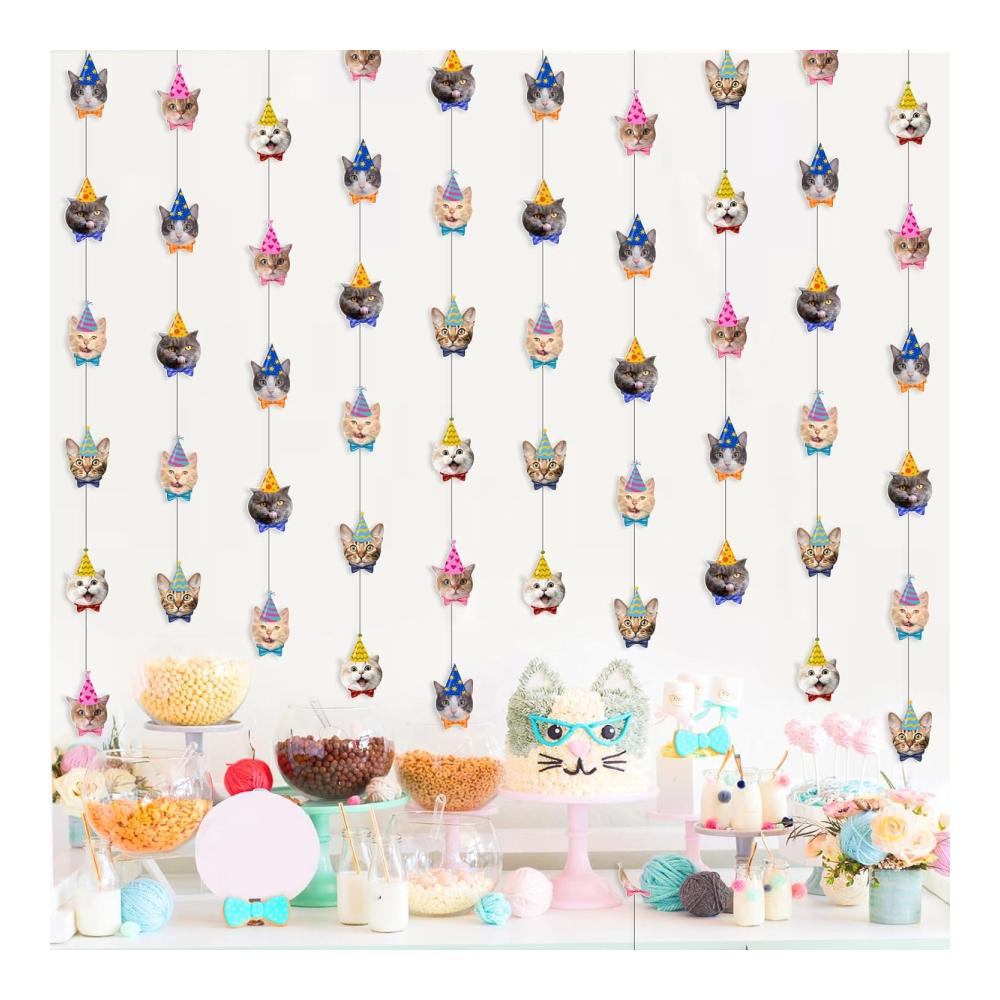 Das spezielle Design zeigt Katzen verschiedener Arten und Farben, jedes mit einem einzigartigen Hut. Perfekt für Katzen-Themenpartys, Geburtstagsfeiern, Miau-Mottopartys und mehr! Verleihen Sie Ihrer Feier mit diesen süßen Girlanden eine besondere Note.