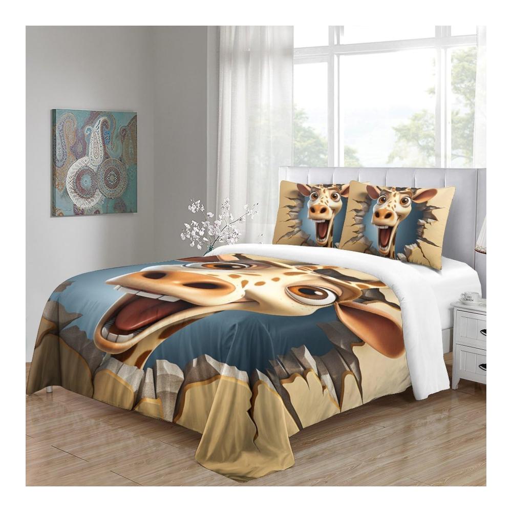 Entdecken Sie das 3-teilige Giraffenkopf Bettbezug-Set! Hergestellt aus weicher Mikrofaser für ultimativen Komfort. Verleihen Sie Ihrem Schlafzimmer mit diesem Cartoon-Stil und farbenfrohen Design einen Hauch von Spaß. Perfekt für Kinder, Mädchen und Jungen.