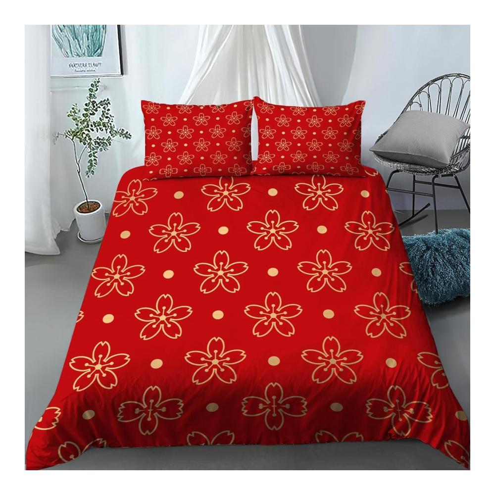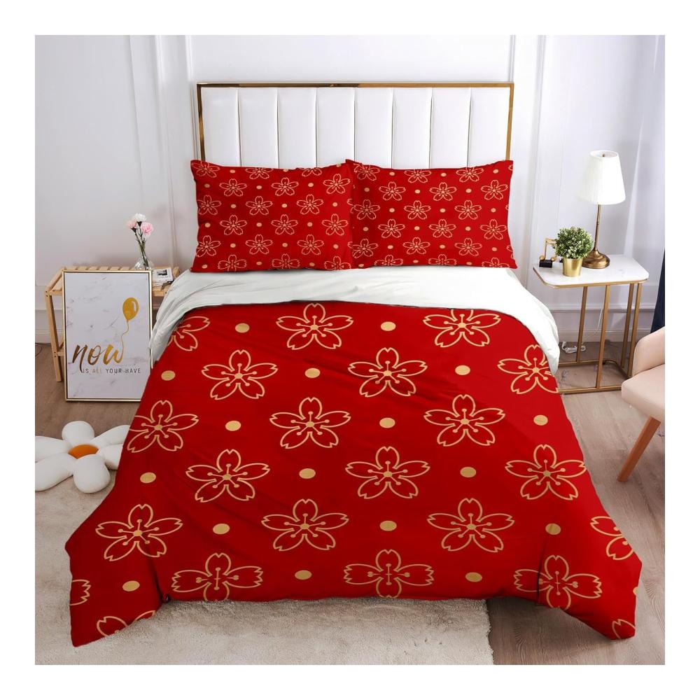 Kirschblüten Bettwäsche Set 200×220 cm – Weiches Mikrofaser Bettzeug – Roter Bettbezug mit 2 Kissenbezügen – 3D Bettwäsche für den Winter – 3-teiliges Bettbezüge & Sets Ensemble