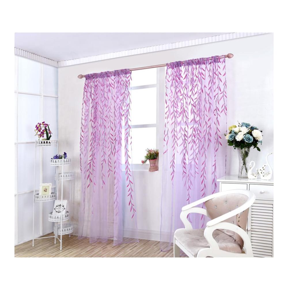 Lieferumfang 1 x durchsichtiger Tüll-Fenstervorhang mit Stangentaschen-Voile-Vorhang mit Weidenmuster für Schlafzimmer Wohnzimmer 100 x 200 cm (lila)Eigenschaften – Material: Glasgarn Fenstervorhänge durchsichtig.- mit Stangentaschen zum bequemen Anbringen von Weidengardinen.- Farbe: Lila Fenstervorhang Blattmuster.– durchsichtige Vorhänge lassen natürliches Licht durch den Raum fließen, bieten aber Privatsphäre. Flur, Küche, Schlafzimmer, Wohnzimmer, Esszimmer, Kinderzimmer, Mädchenzimmer und mehr Weidenblätter Vorhang durchsichtig.- Größe: ca. 200 x 100 cm/ 78,7 x 39,4 Zoll (L x B) durchsichtige Fensterpaneele.NetzvorhangEinzelvorhang aus Voile 51– Premium-Material mit zarter Textur und langlebigen, transparenten Blattfenstervorhängen.- Kombination aus Schlichtheit und Eleganz, verschönern die Einrichtung von Weiden-Voile-Vorhängen.Wareninfo Grün Voile-Vorhänge Voile-Paneele filtern natürliches Licht und lassen viel Sonnenlicht herein, während sie gleichzeitig Privatsphäre und Energieeffizienz bieten und gleichzeitig den Panoramablick oder das weit geöffnete Gefühl bewahren. Transparente Fenstervorhänge Dieser halbtransparente Voile-Vorhang betont informelle und formelle Einstellungen und verleihen jedem Raum ein weiches, frisches, neues Aussehen. Willow-Voile-Vorhänge, die durchsichtigen Fenster bieten Sicht und zerstreuen das Sonnenlicht. Vorhänge mit 2 Paneelen können Sie direktes, heißes Sonnenlicht abhalten und dennoch nach außen sehen