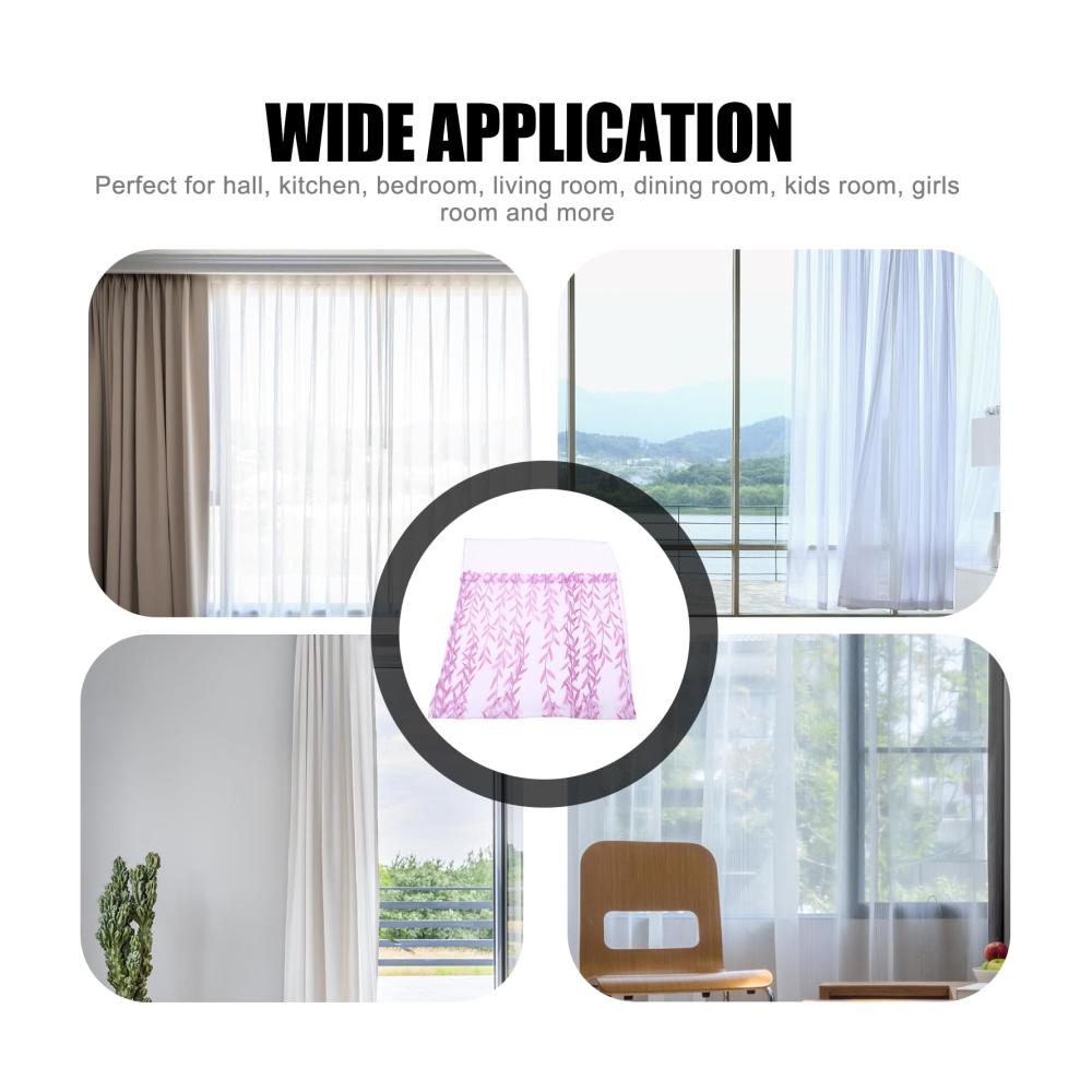 Transparenter tüll macht diesen vorhang frei von beschichtungen und giftig. Fühlt sich sicher an, wenn sie sich in der nähe des fensters befinden. Dieser schleier sieht an einem schlafzimmer-, wohnzimmer- oder küchenfenster elegant aus