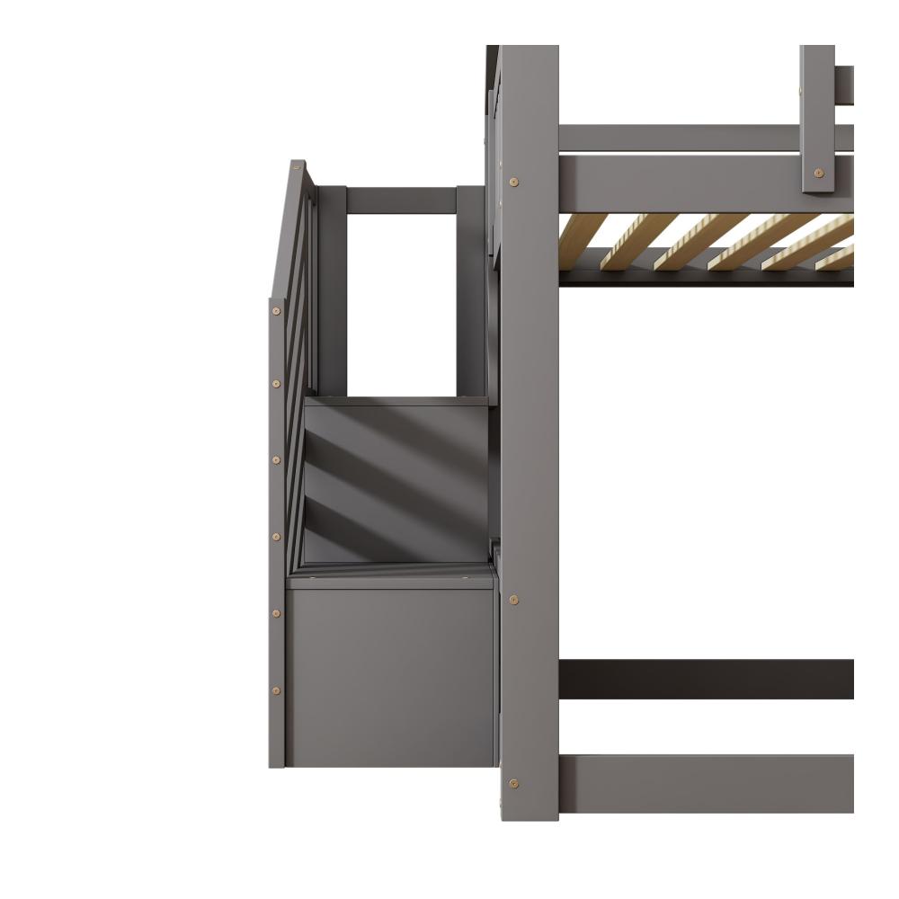 Etagenbett Kinderbett mit Treppe und Rutsche Doppelbett Holzbett und 1 Lattenrost für Kinder Jugendliche und Erwachsene 140×200 ohne Matratze Grau