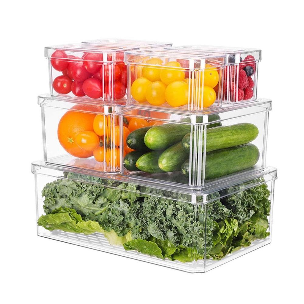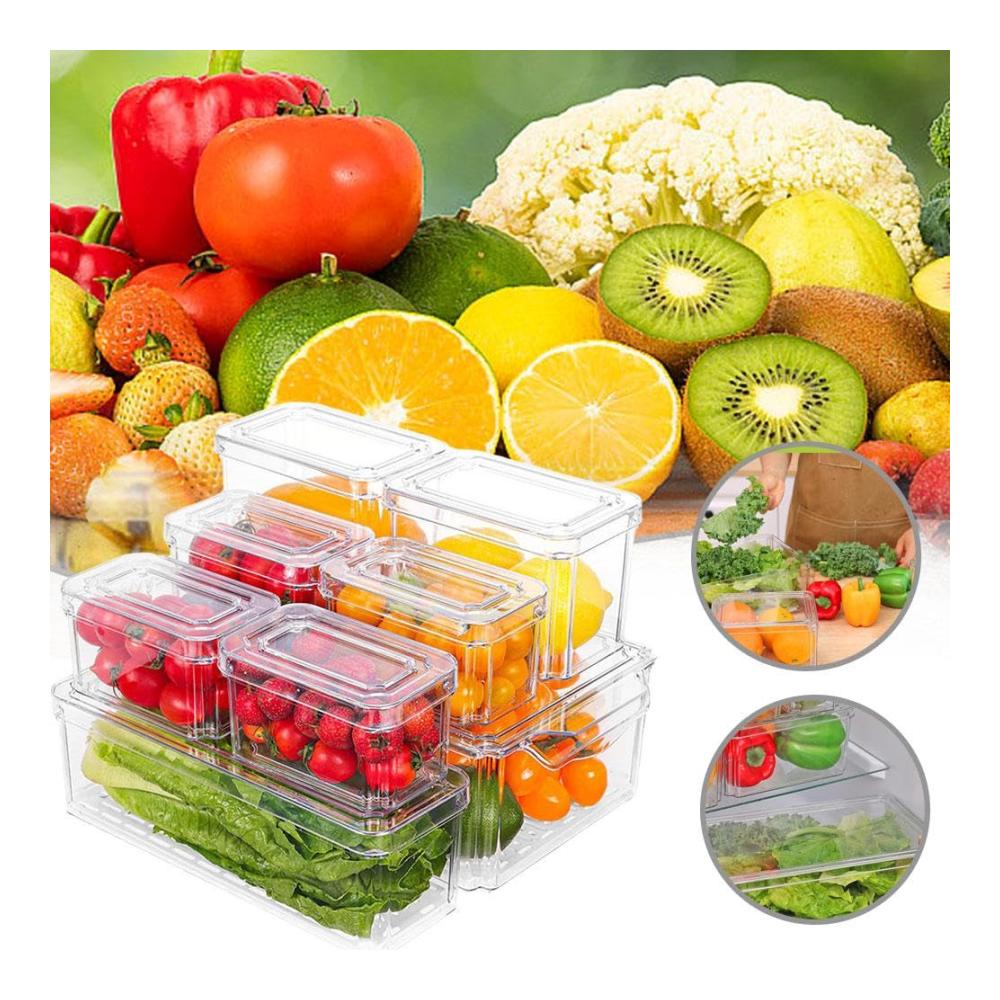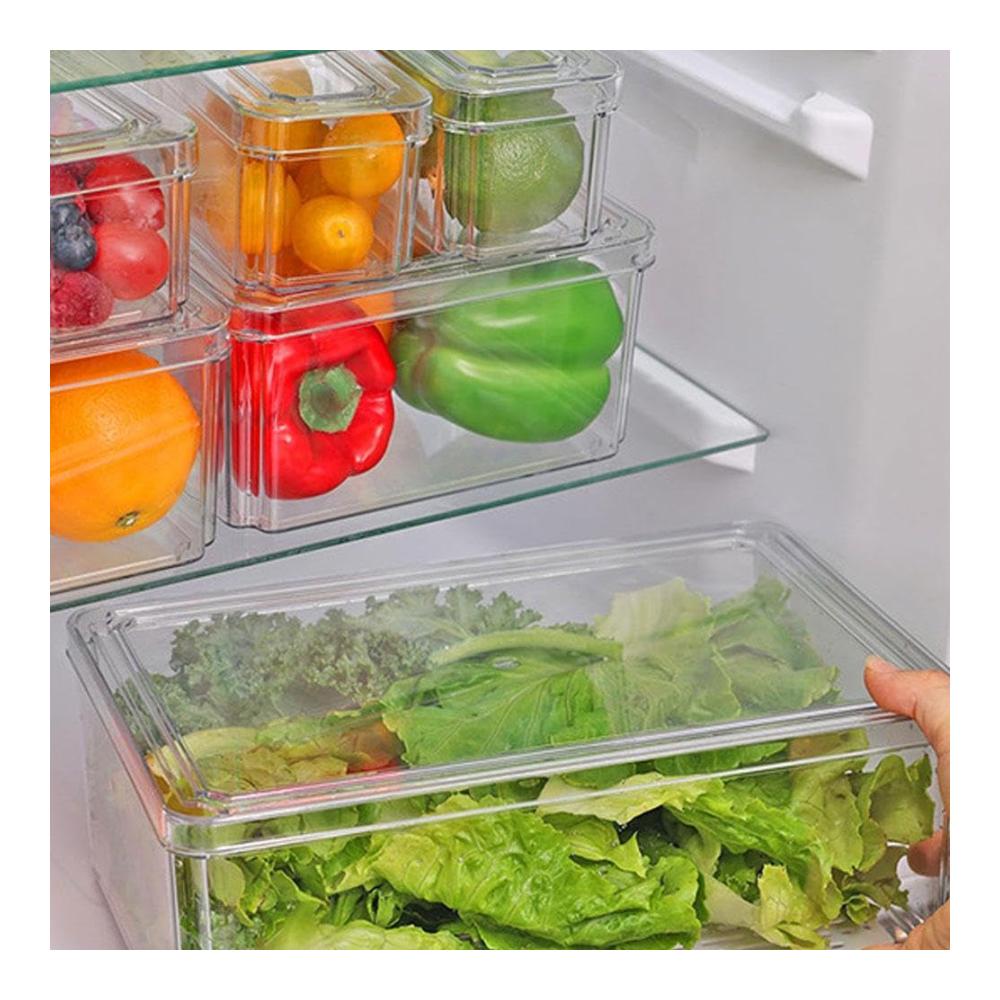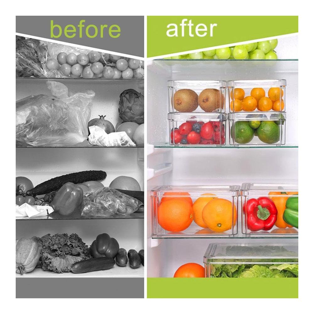 Optimale Ordnung Schubladeneinsätze für Kühlschrank & Speisekammer. Transparente stapelbare Kühlschrank-Organizer mit Deckel. Praktische Obst-Aufbewahrung in Kunststoff. Küchenorganisation für frische Lebensmittel