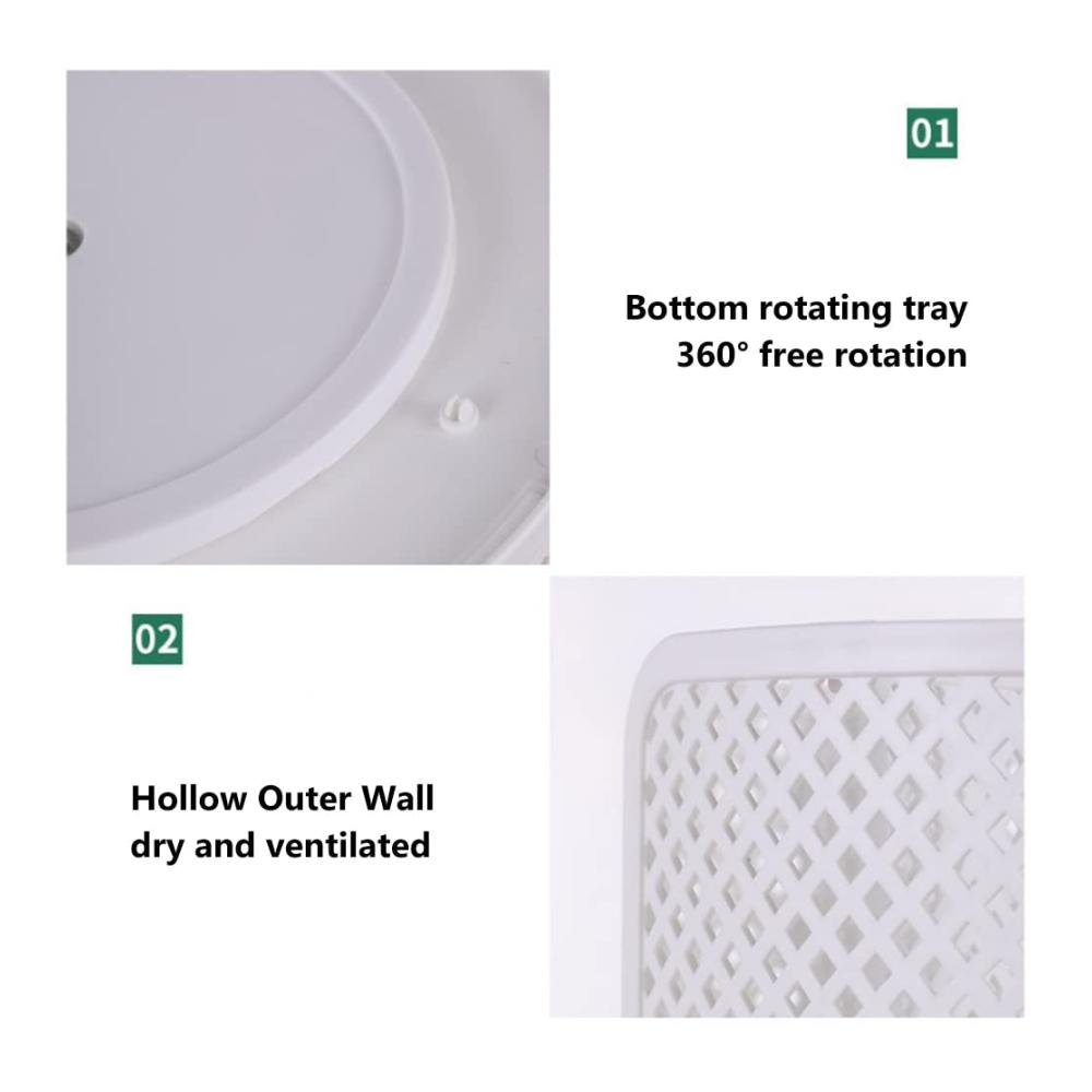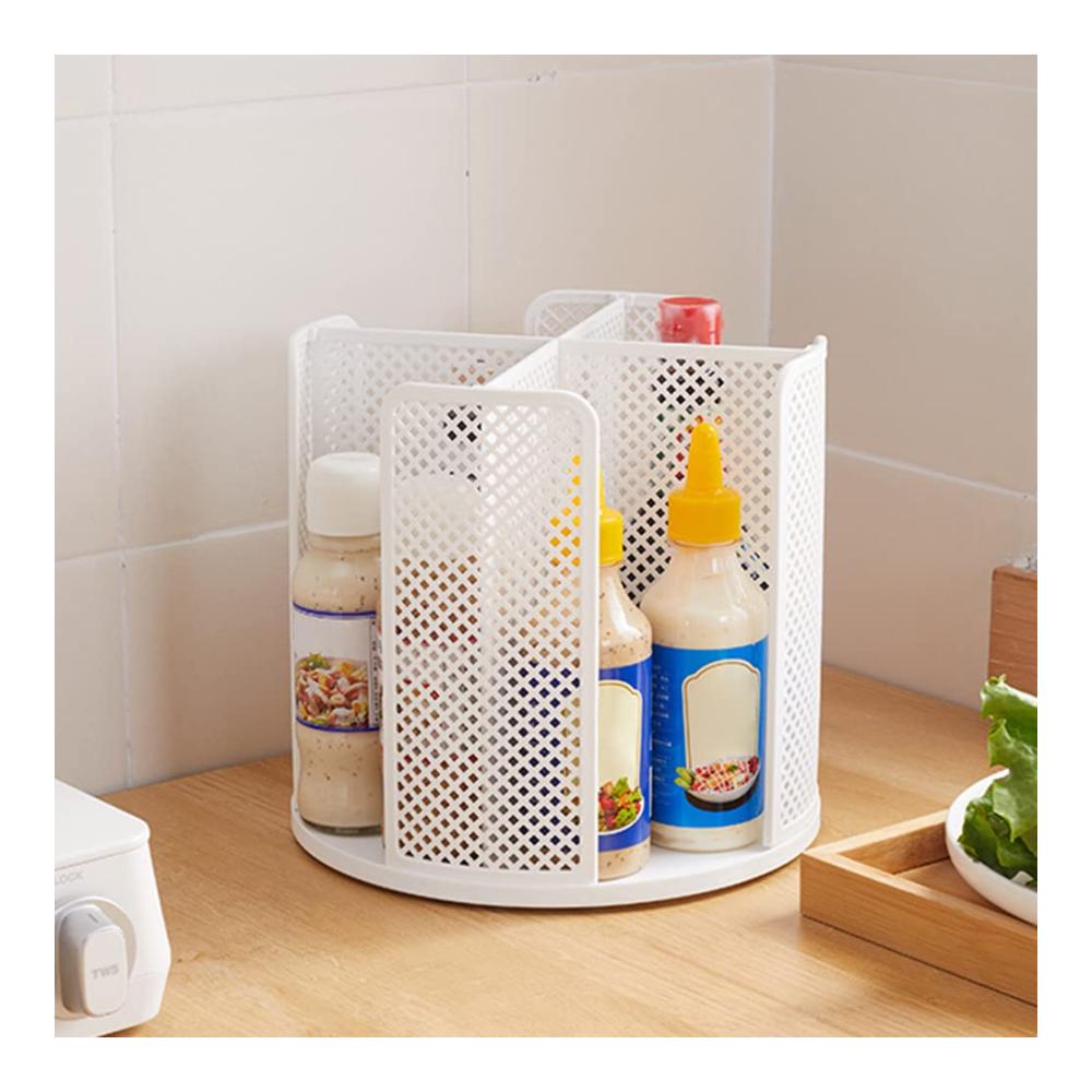 Das drehbare Aufbewahrungsregal ist zur einfachen Reinigung abnehmbar, und das Küchenaufbewahrungsdesign mit einem Durchmesser von 9,25 Zoll und großem Fassungsvermögen kann Gegenstände unterschiedlicher Größe aufnehmen. Die Außenhöhe von 8,66 Zoll verhindert, dass Gegenstände herumrutschen, sodass Sie leicht finden, wonach Sie suchen.