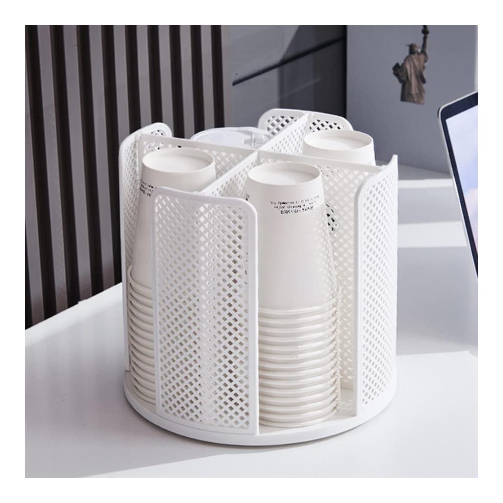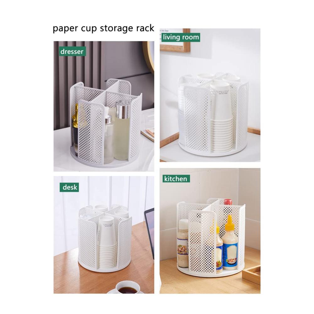 Optimierter Zahnputzbecherhalter: Der rotierende Pappbecher Spender mit 360-Grad-Drehfunktion bietet bequeme Aufbewahrung für Küche, Schlafzimmer und Toilette. Das 4-Fächer-Design ermöglicht einfaches Stapeln und Herausnehmen von Bechern und Deckeln. Sein vertikales Layout gewährleistet kinderleichten Zugang zu Papier- und Getränkebechern. Dieser praktische Organizer eignet sich nicht nur für Küchenutensilien, sondern auch als ideale Aufbewahrungslösung für Kosmetika im Badezimmer oder Geschirrkörbe im Schlafzimmer. Er ist vielseitig und platzsparend für eine organisierte Umgebung.