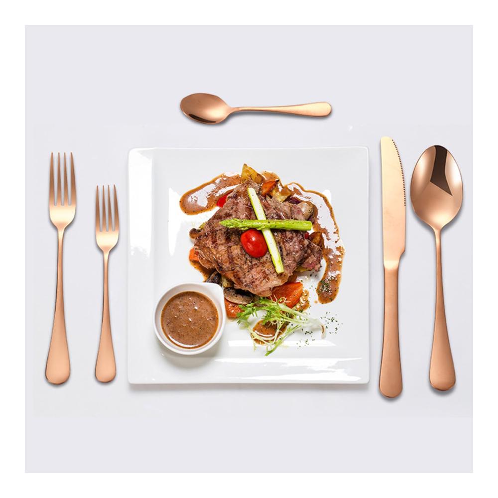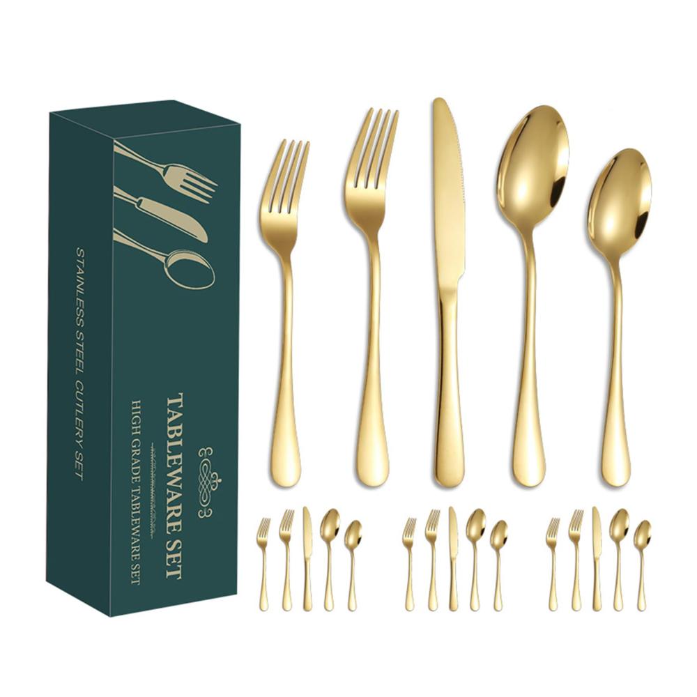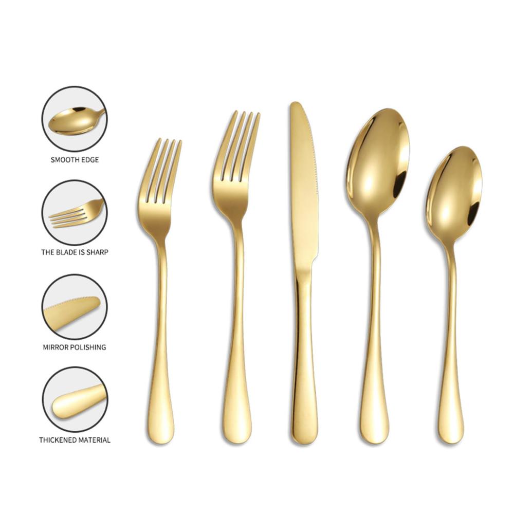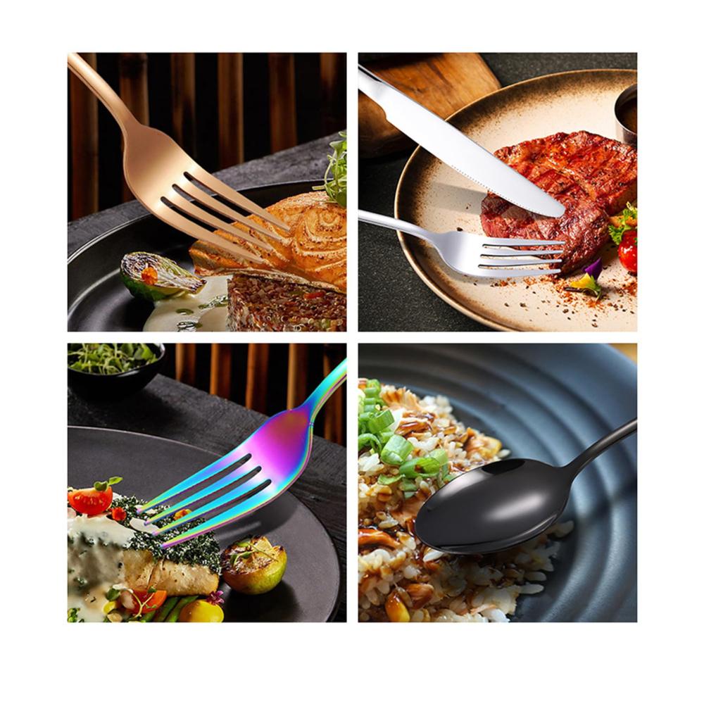 【Einfach zu bedienen】 Das Besteckset wurde sorgfältig entworfen, um Ihnen ultimativen Komfort beim Essen zu bieten. Jedes Produkt liegt gut in der Hand und kann problemlos verwendet werden. Die fein geschliffene Klinge des Messers schneidet mühelos durch Fleisch, während die Zinken der Gabel perfekt dimensioniert sind, um Lebensmittel sicher zu halten. Löffel haben die ideale Form und Größe zum Genießen von Suppen, Desserts oder Hauptgerichten.