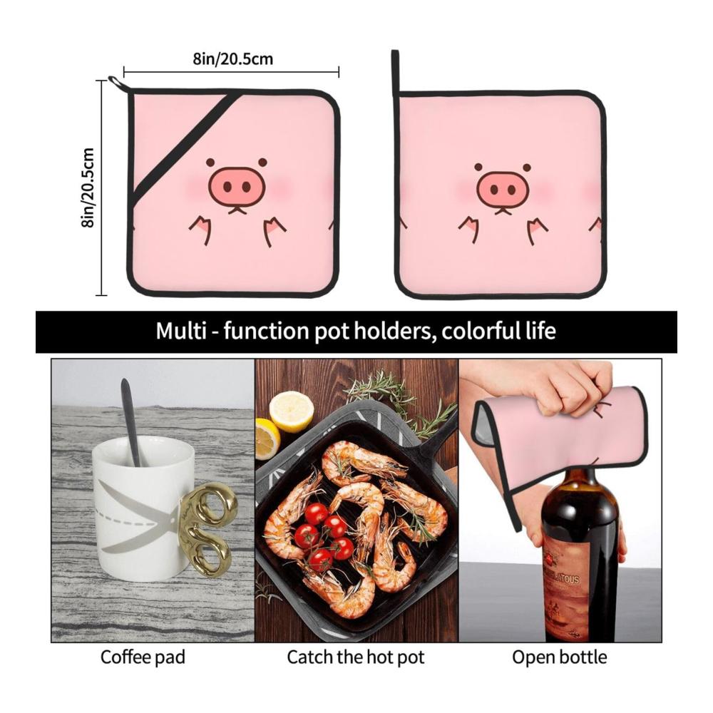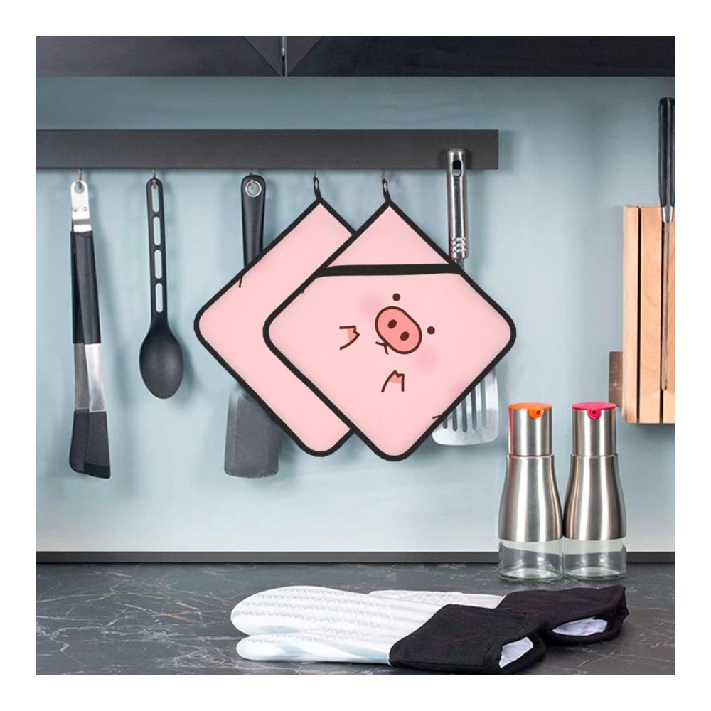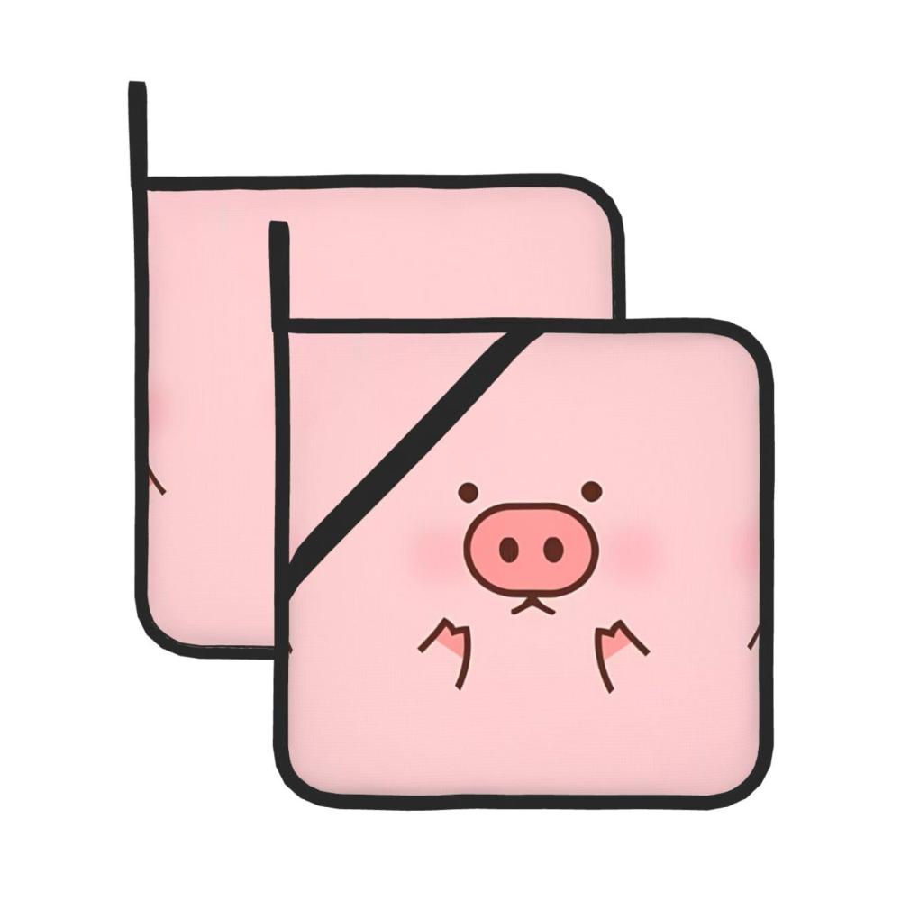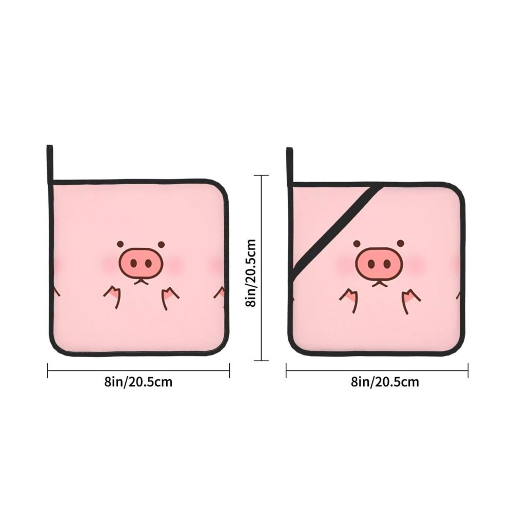 BHCASE Zweiteiliger quadratischer isolierter Topflappen-Bezug mit niedlichem Schweine-Aufdruck. Produktmaterial: wasserdichtes Polyestergewebe Verbrühungsschutzmaterial. Qualität