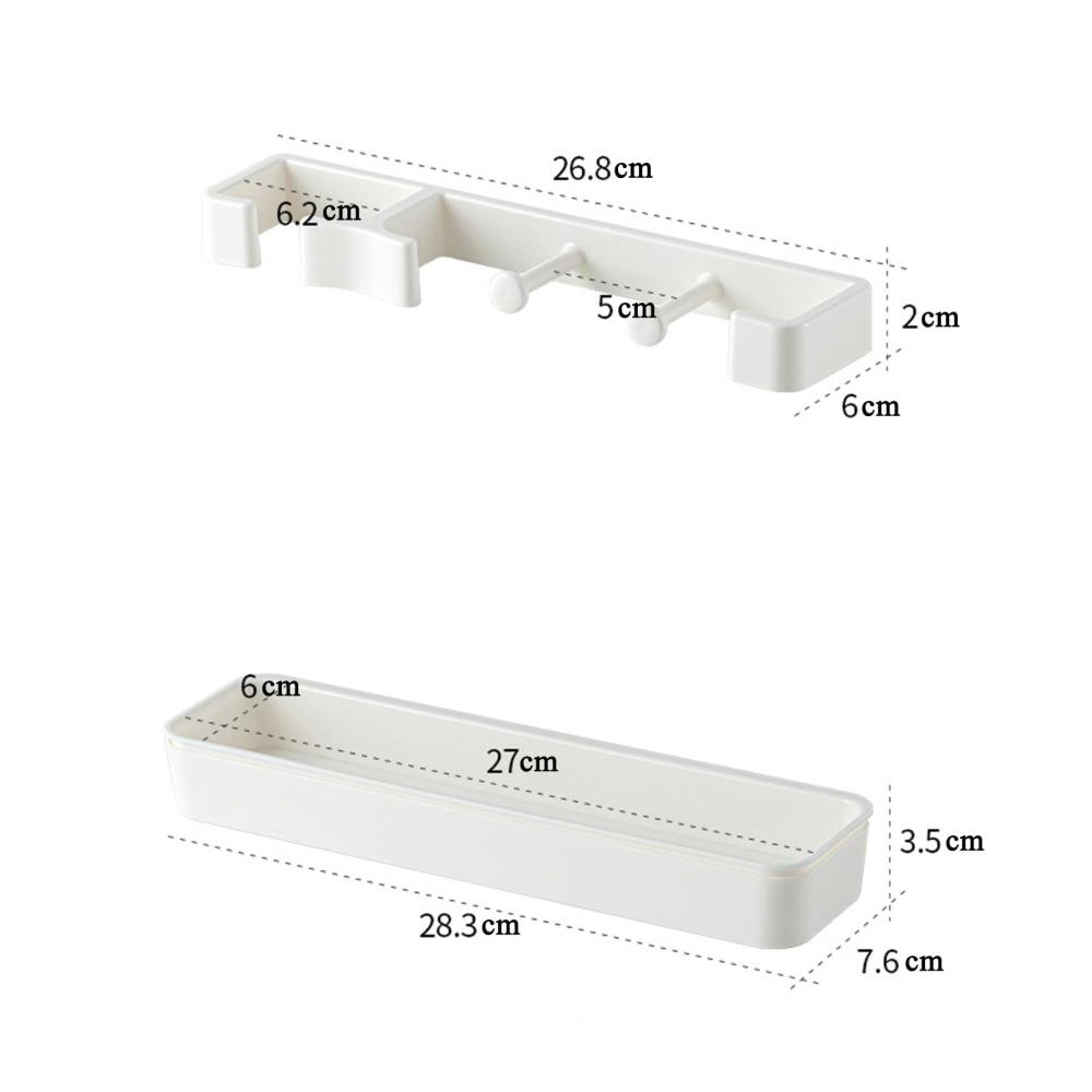 Holen Sie sich den eleganten Regenschirmständer in Weiß für stilvolle Organisation! Unser wandmontierter Schirmhalter ist platzsparend und verfügt über eine 3,5 cm tiefe Bodenrille zur einfachen Wasserauffangung. Hergestellt aus robustem ABS-Material rostet er nicht und ist perfekt für nasse Schirme geeignet. Das innovative Design mit Haken ermöglicht die Aufbewahrung von langen und kurzen Regenschirmen. Beachten Sie, dass der Schirmständer nur für flache, glatte Wände wie Keramikfliesen, Glas oder Metallplatten geeignet ist. Maße: Obere Schicht 26,8 cm x 6 cm x 2 cm, Untere Schicht 28,3 cm x 7,6 cm x 3,5 cm.