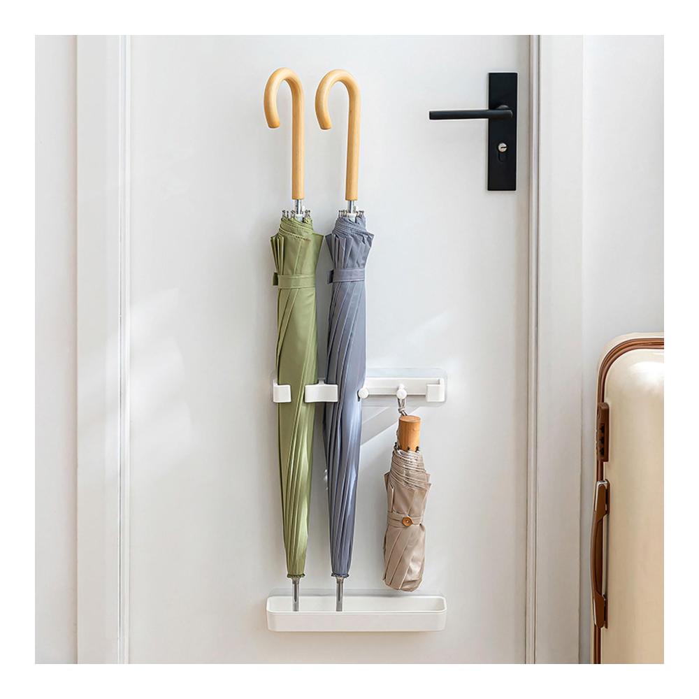 Premium Schirmständer Wandmontage Weiß mit Abnehmbarer Tropfablage – Modernes Design für Flur und Büro – Stilvoller Regenschirmhalter zur Organisation und Dekoration (Weiß