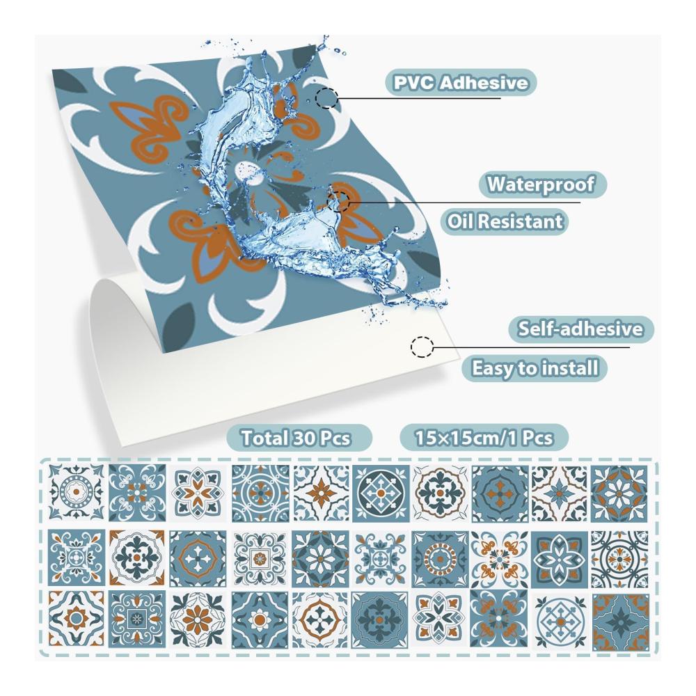 ►Größe:Der Marokkanischer Fliesenaufkleber ungefähr:15 CM x 15 CM,insgesamt 30 Blatt.Eine Anzahl von Fliesenaufklebern ermöglicht es Ihnen, den Raum ohne Einschränkungen zu dekorieren.