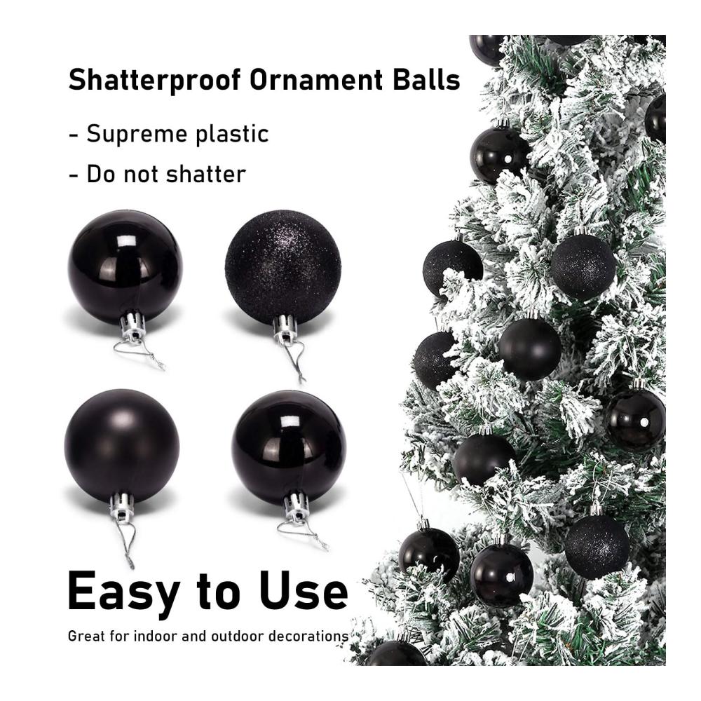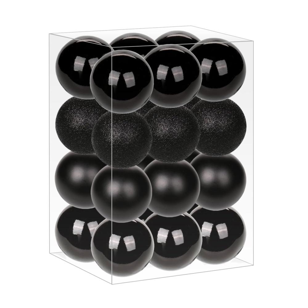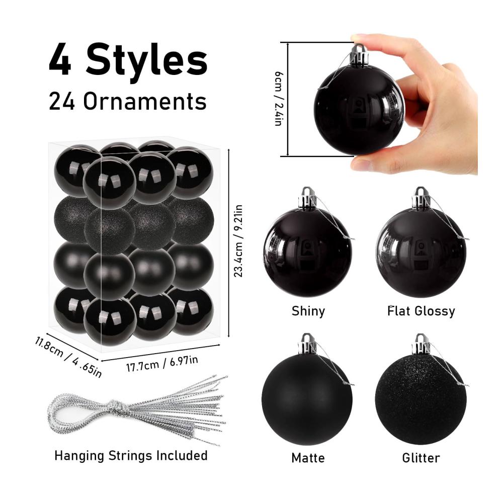 Weihnachtskugeln Baumschmuck 24 Stück – Exklusives Set mit Ø 6 cm Kunststoff Christbaumkugeln – Dekorative Ornamente für Ihren Weihnachtsbaum – Traditionelles Schwarz & Glanz für festliche Ak