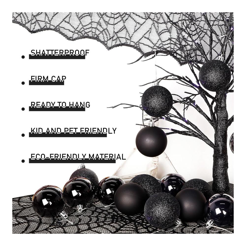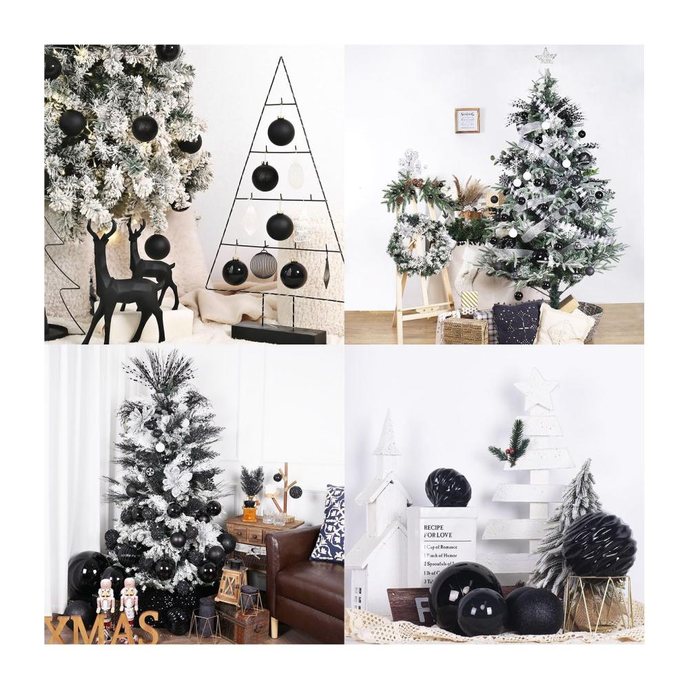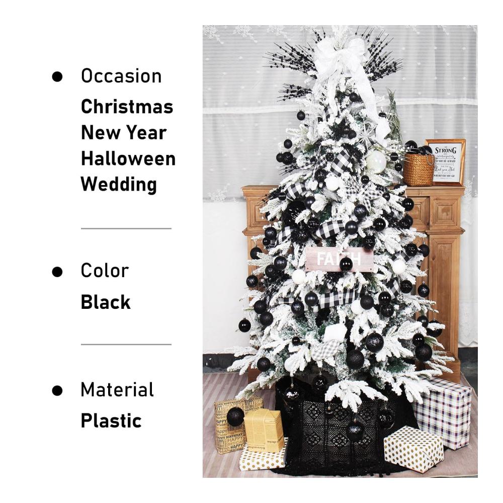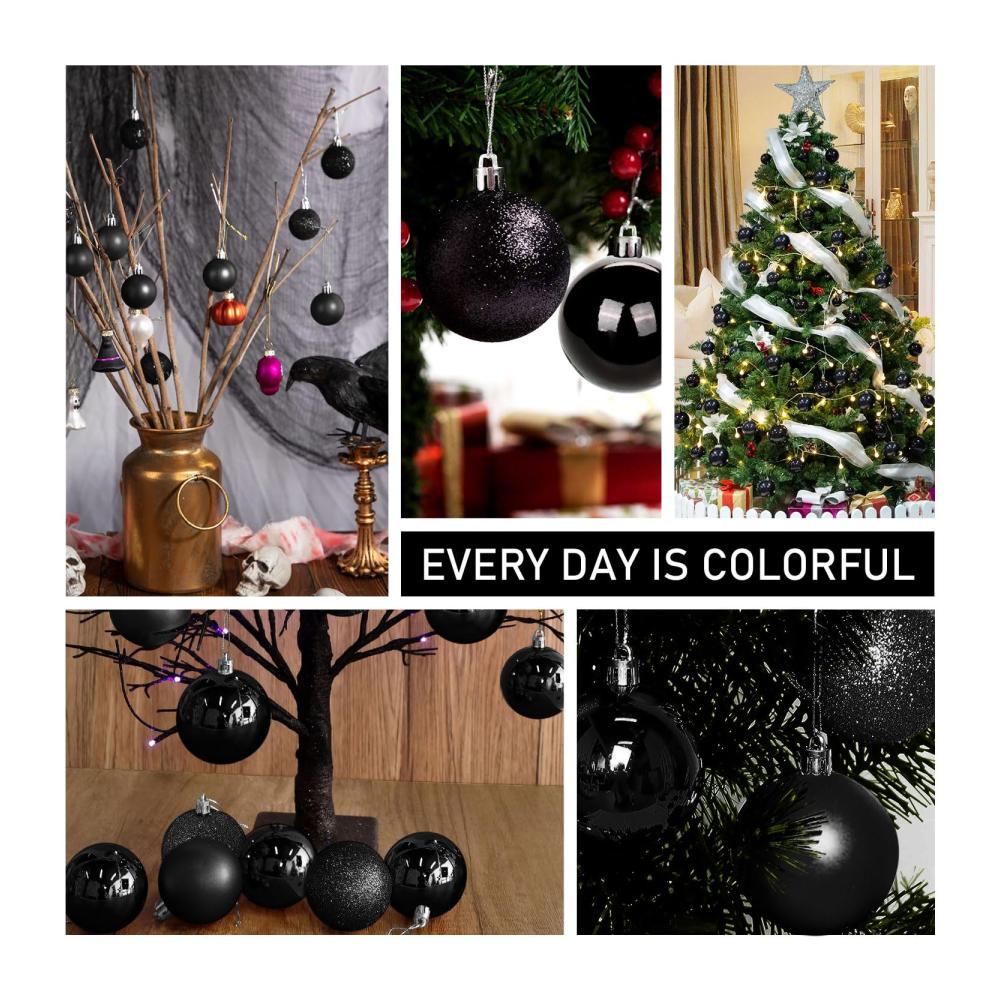 Weihnachtskugeln Baumschmuck 24 Stück – Exklusives Set mit Ø 6 cm Kunststoff Christbaumkugeln – Dekorative Ornamente für Ihren Weihnachtsbaum – Traditionelles Schwarz & Glanz für festliche Ak