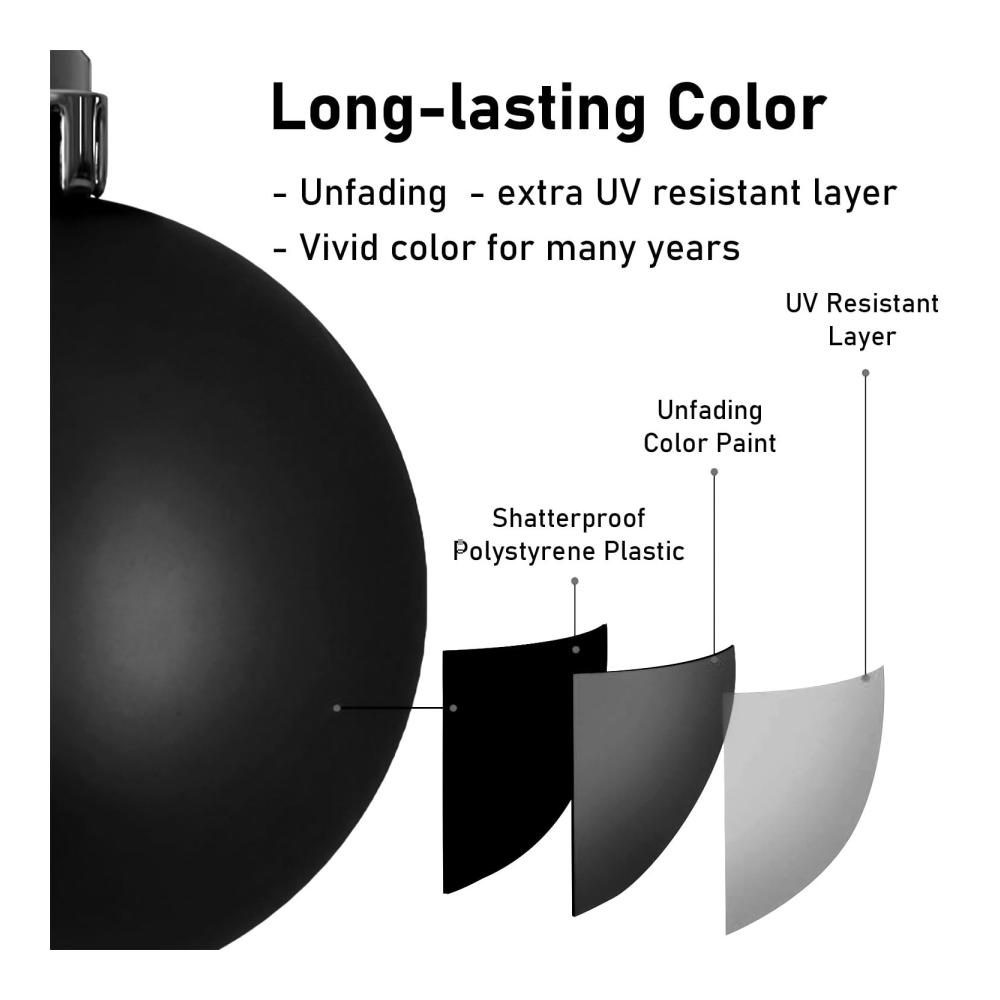 🎄Shatterproof – hergestellt aus langlebigem und umweltfreundlichem Kunststoff, der den traditionellen Glaskugelprodukten überlegen ist, da er bruchsicher und bruchsicher ist. Die Weihnachtsbaumkugel Ornamente zeigen die Schönheit und den Glanz von echtem Glas und kombinieren das leichte Gewicht und die Haltbarkeit von Kunststoff mit der Schönheit und dem Glanz von echtem Glas, so dass sie die Äste des Weihnachtsbaums nicht überladen und keinen Platz in Ihrer Geschenkverpackung beanspruchen.